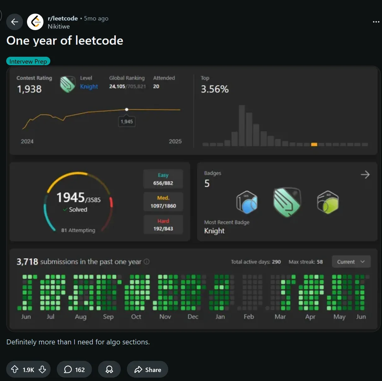 I’ve only really started again in April of 2024, and I had 4 months (Jan 2025 - Apr 2025) where I didn’t study at all due to military. Overall, I’ve only been studying for less than 1.5 years, averaging less than 2 problems a day.